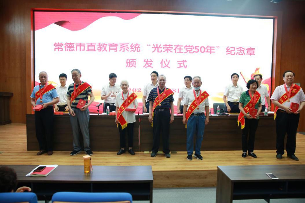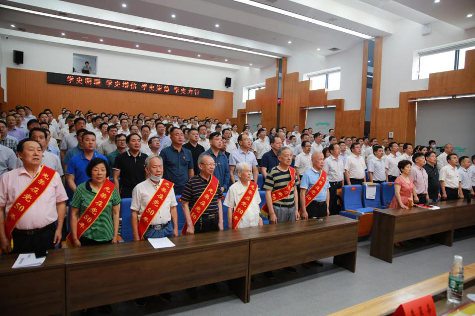 会上,由市教育局党组成员、副局长张林同志领誓,全体参会人员重温了入党誓词;向部分老党员代表颁发了“光荣在党50年”纪念章;表彰了34名优秀共产党员、32名优秀党务工作者和34个先进基层党组织。副局长覃道勇同志、市纪委监委派驻市教育局纪检组组长陈勇同志先后就全市学校安全稳定工作和师德师风建设工作进行了部署和调度。