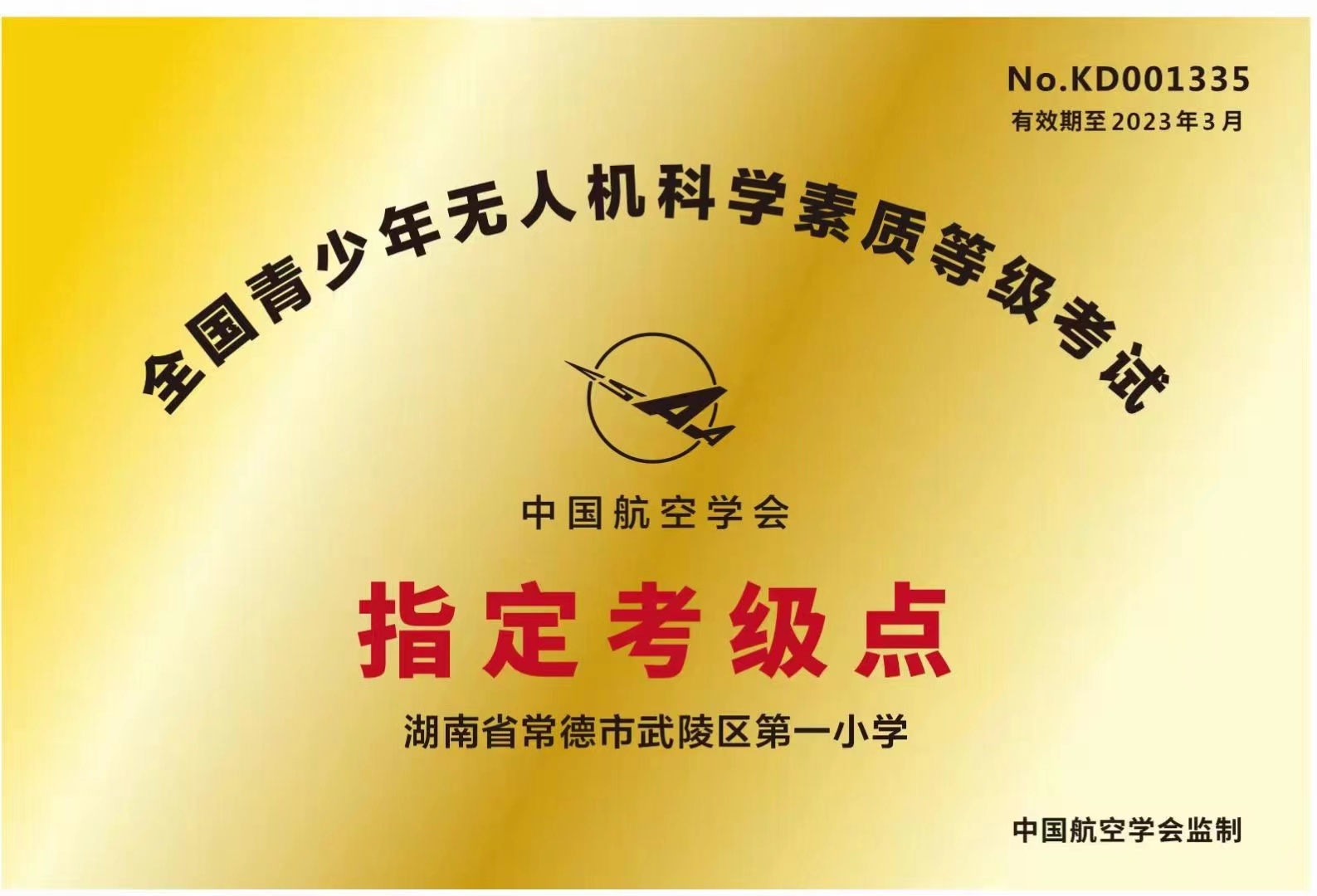 常德日报记者 韩冬 通讯员 肖颖静 黄爱琳 日前,中国航空学会为武陵区第一小学颁发“全国青少年无人机科学素质等级考试指定考级点”匾牌。这是我市首个该项指定考级点,按计划考级点每年组织4次等级考试,今年6月第一次开考。