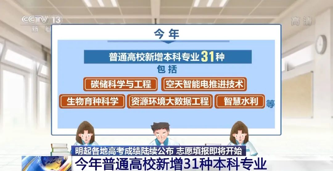 今年,普通高校新增本科专业31种,包括碳储科学与工程、空天智能电推进技术、生物育种科学、资源环境大数据工程、智慧水利等,这些专业都是在全国高校中首次设置,共有38所高校通过了新增专业审批。